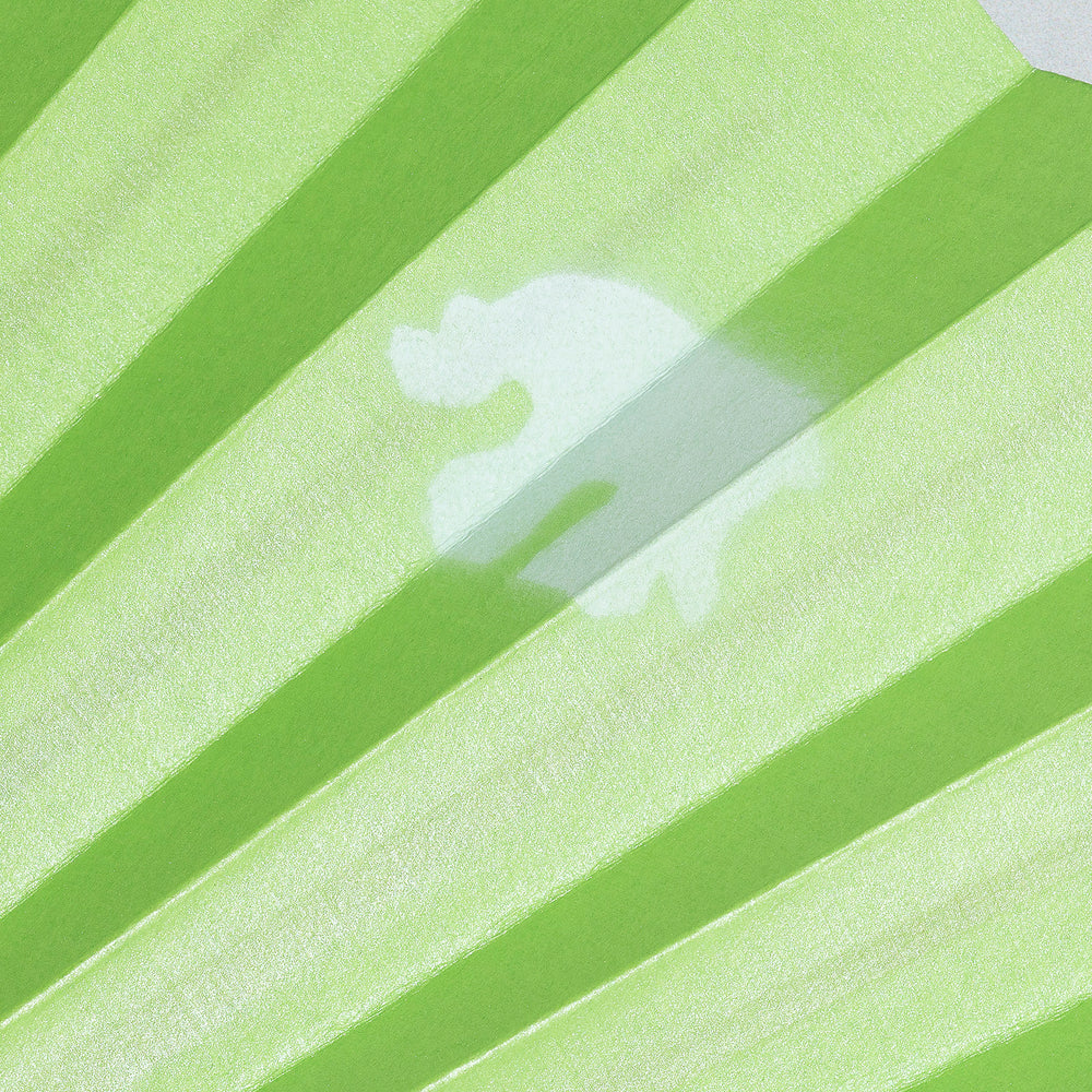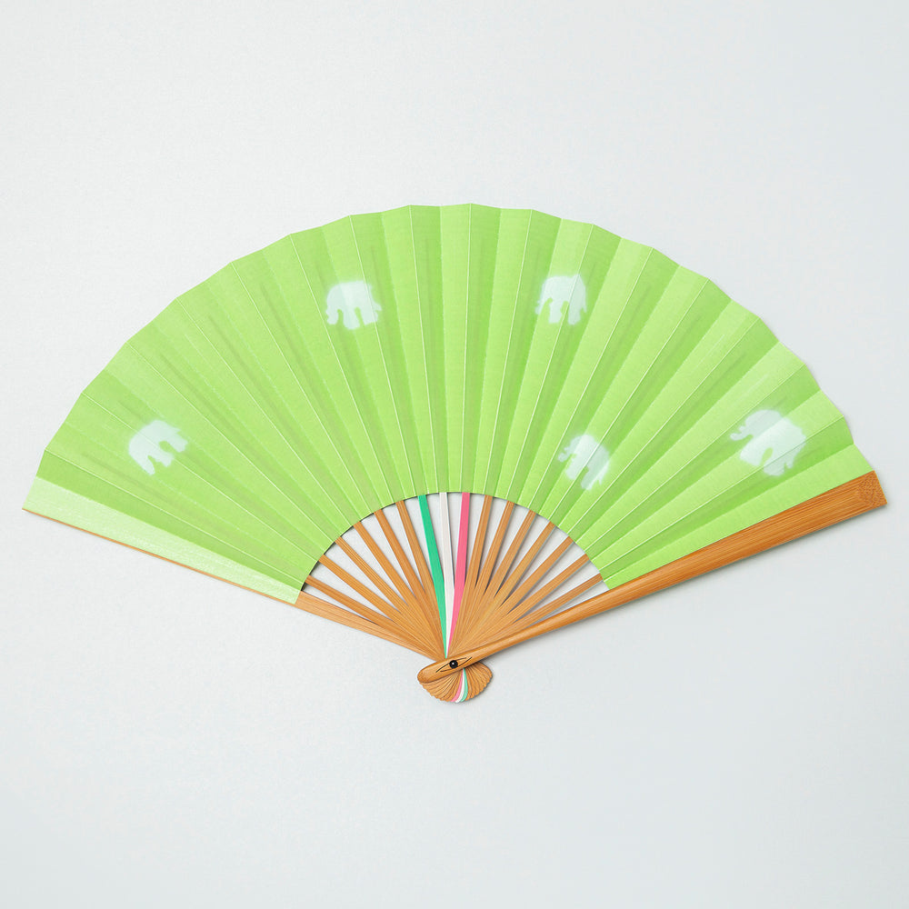 安定や信頼の象徴とされる神聖なゾウをモチーフにデザイン。職人が刷毛で一本ずつ入れる若草を思わせるみずみずしいグリーンに、ゾウのモチーフをステンシルのようなボケ感で表現。手作業で行っているため、一点一点ボケ感が若干異なるのが魅力です。
