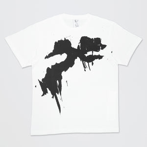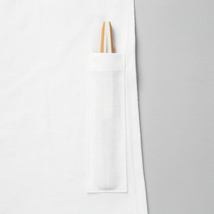 3本脚の八咫烏(やたがらす)のグラフィックをデザインしたTシャツ。ベーシックなホワイト地で、左腰に扇子を差すことができるポケット付き。