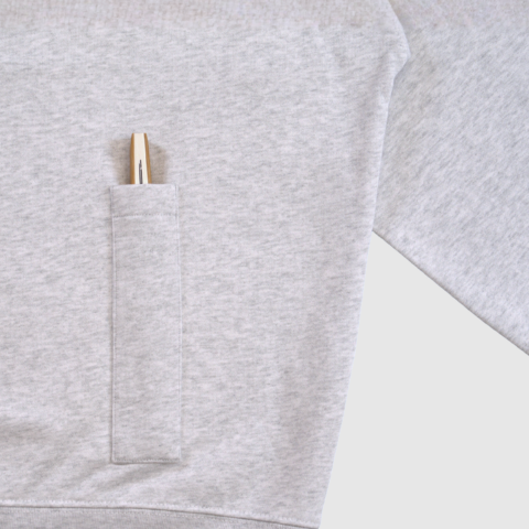 3シーズン着まわせる、ミドルな厚さと軽快な生地感が魅力のスウェット。裾まわりのシルエットが浮かないように絞り込んだ裾口や、ほどよい溜まり感のある袖、ストンとドロップするショルダーラインなど、シルエットの随所にこだわりを詰め込んだほか、首まわりはタフなダブルステッチを採用。