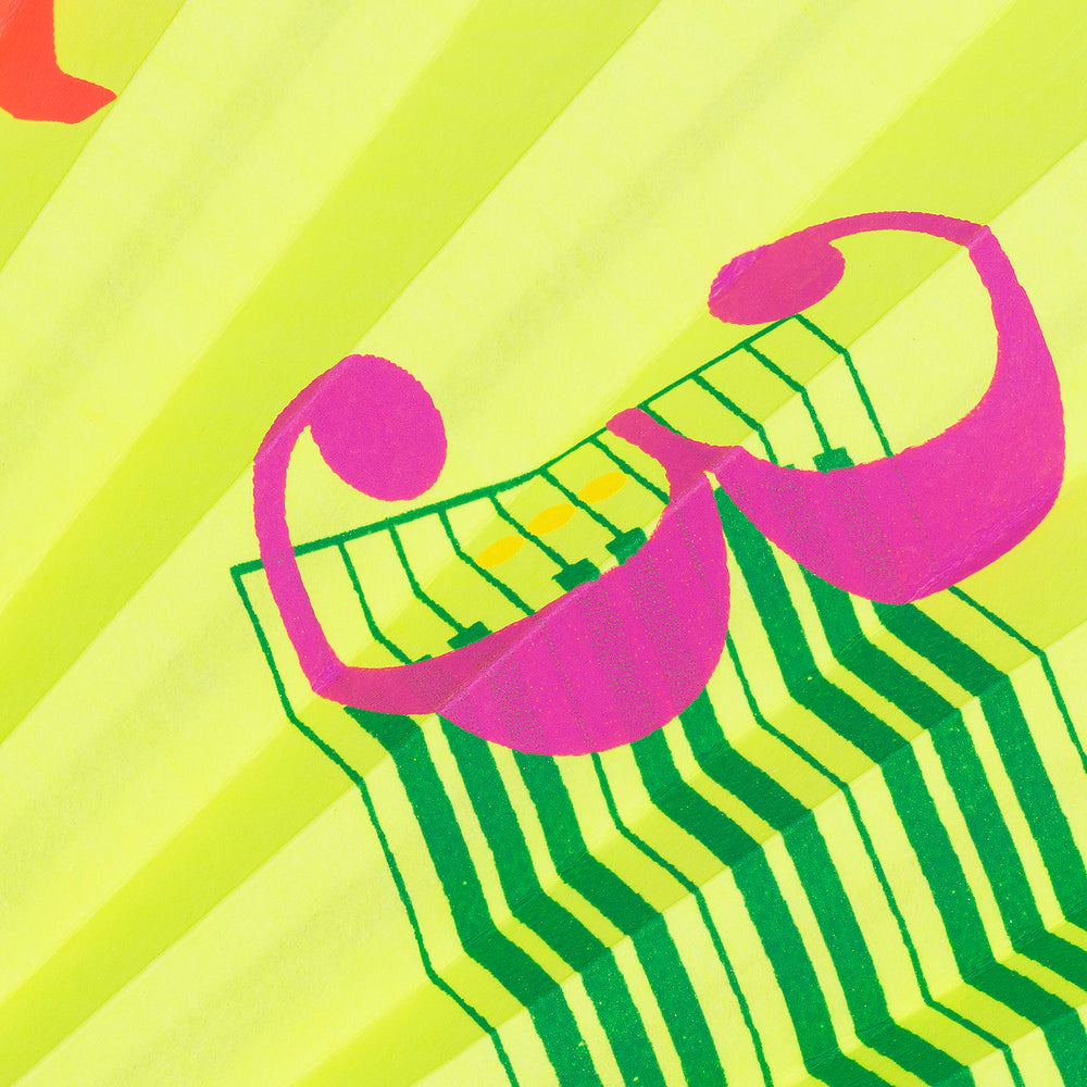 鍵盤や音符をモチーフに使い、 “音”をテーマにデザイン。職人が刷毛で一本ずつ色を入れることで立体感が生まれた鮮やかなイエローに、色鮮やかなモチーフを配置。存在自体がアバンギャルドなバナナとイエロうらしいアイテムです。