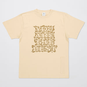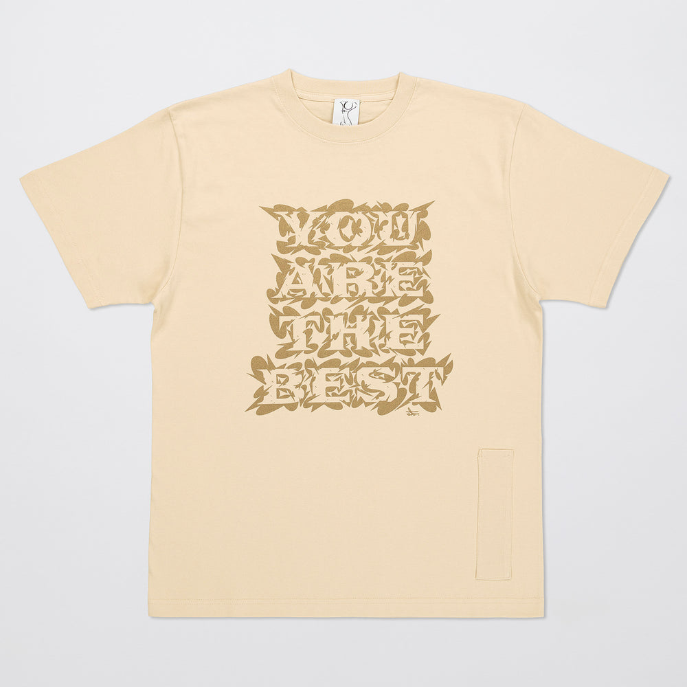 「The Fanciest cheesy souvenir made in Kyoto / 失われたお茶の間系土産の最最高品」のコンセプトのもと作成されたPOPでアヴァンギャルドなデザインで、着る人を褒め称えてくれるポジティブなメッセージ「YOU ARE THE BEST」を胸元にプリント。