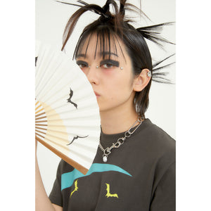 幸運のモチーフであるコウモリを胸元にプリントしました。同柄の扇子とのコーディネートもオススメです。左腰に扇子を差すことができるポケット付き。