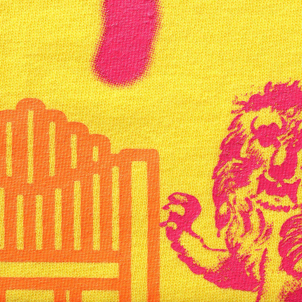 2頭のライオンと、“音楽の父”バッハへのオマージュをモチーフにした柄を胸元にプリント。同柄の扇子と合わせたコーディネートもおすすめです。左腰に扇子を差すことができるポケット付き。