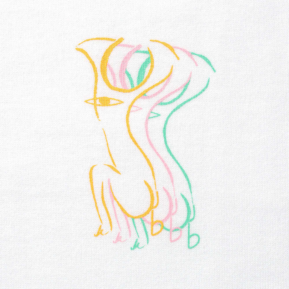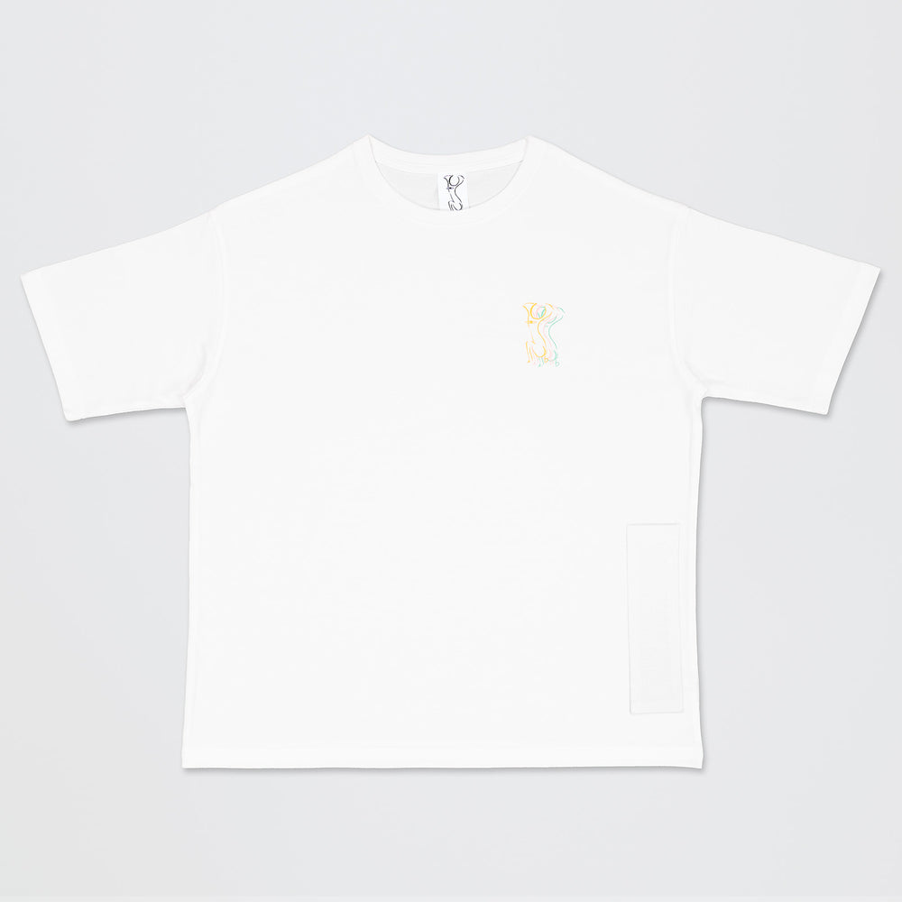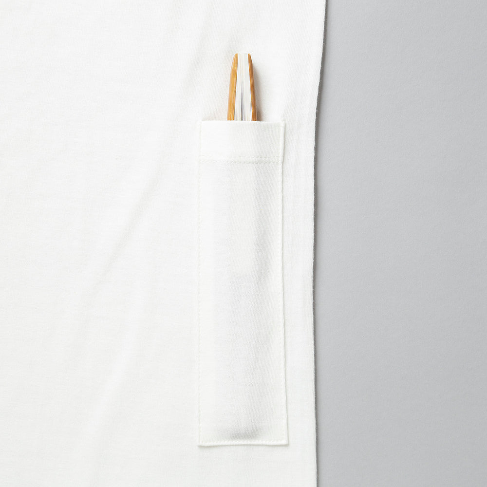 三連のブランドシンボルを左胸にプリント。ややゆとりのあるオーバーサイズボディを採用したTシャツは、1枚で着ても今っぽいシルエットになります。左腰に扇子を差すことができるポケット付き。