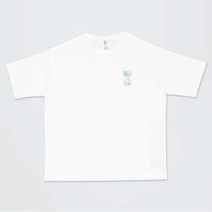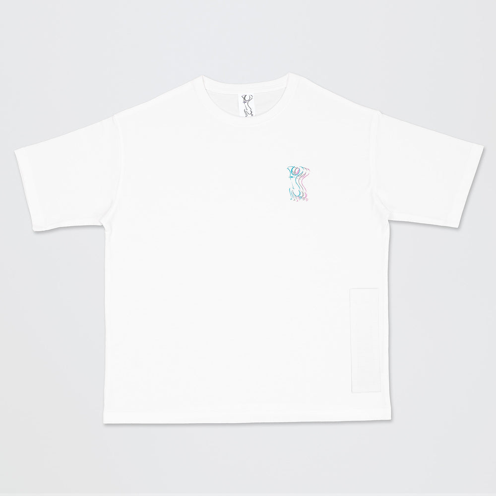三連のブランドシンボルを左胸にプリント。ややゆとりのあるオーバーサイズボディを採用したTシャツは、1枚で着ても今っぽいシルエットになります。左腰に扇子を差すことができるポケット付き。
