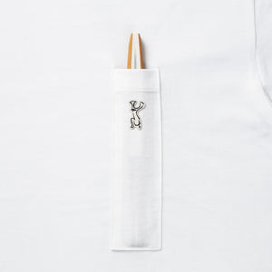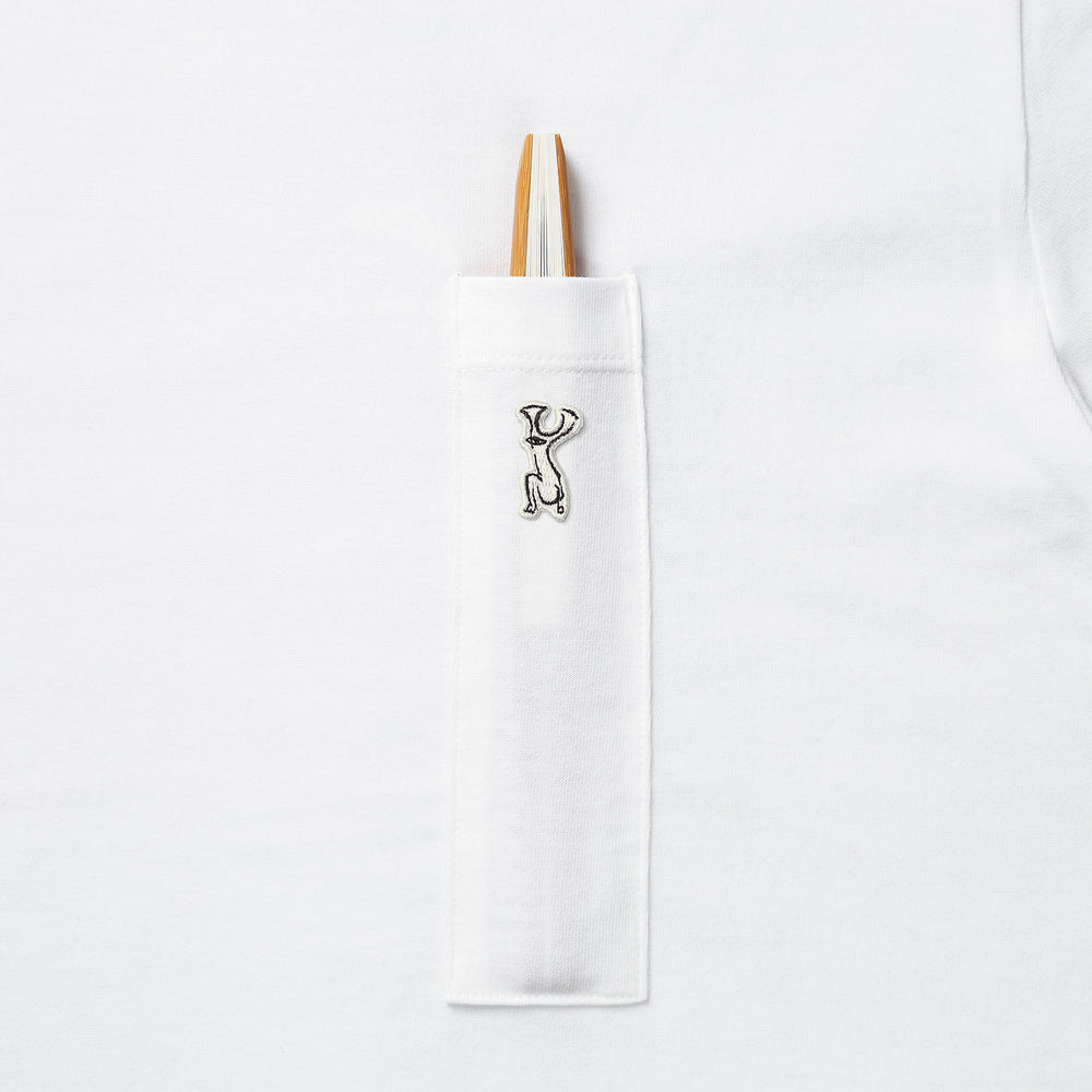 左胸の刺繍ワッペンがワンポイントのTシャツ。左胸に扇子を差すことができるポケット付き。
