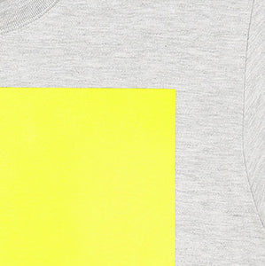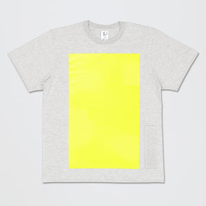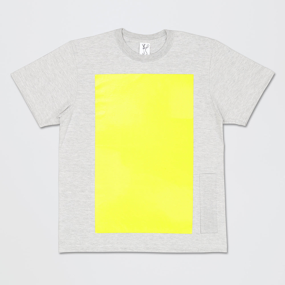ブランドのテーマカラーである蛍光イエローを大胆にプリントしたインパクトのあるTシャツ。左腰に扇子を差すことができるポケット付き。