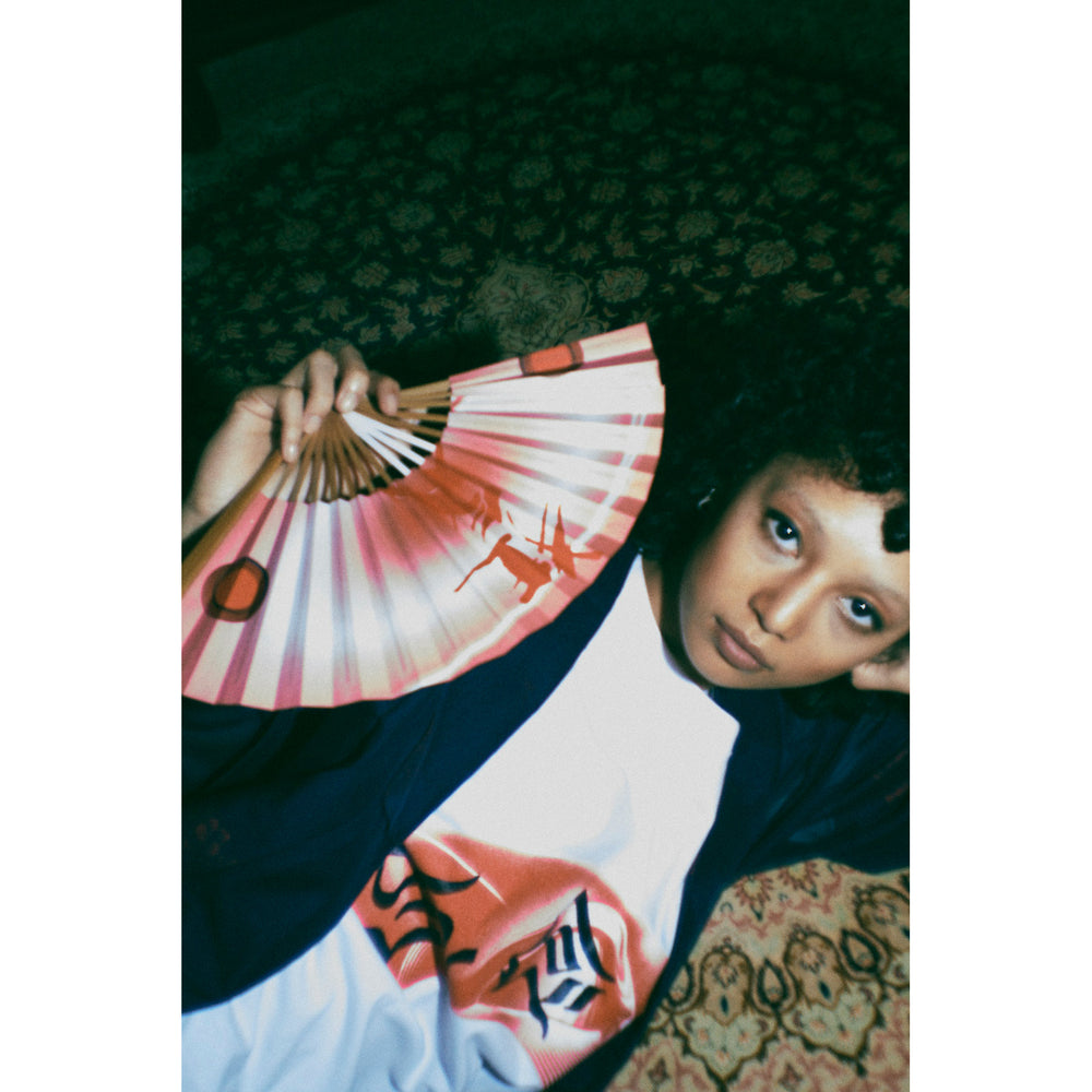 マヒトゥー・ザ・ピーポー(GEZAN)とのコラボレーション作品。本人を象徴するカラーである赤を基調に、目をモチーフにしたグラフィックを扇型に配置。GEZANが主催する音楽フェスに通じる「全感覚」の文字をデザイン。左腰に扇子ポケット付き。