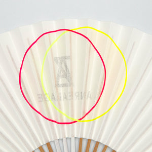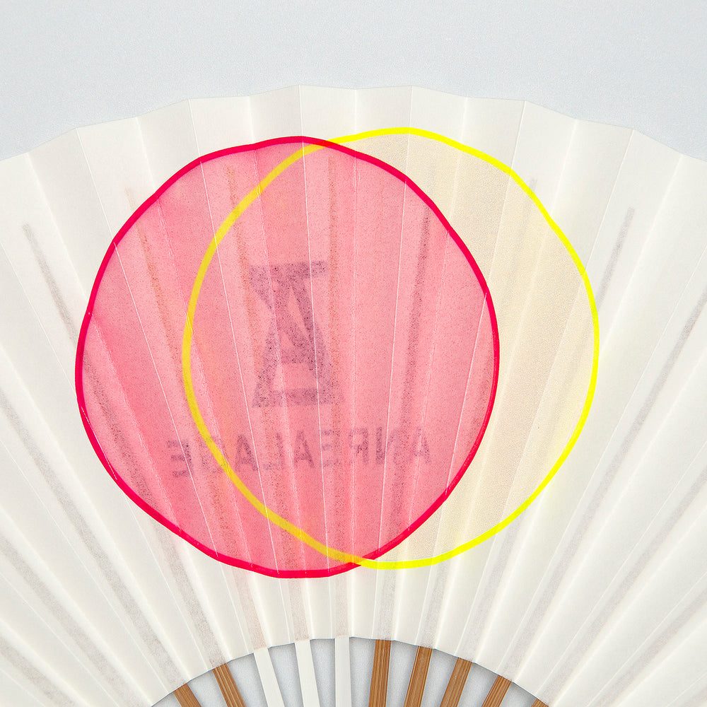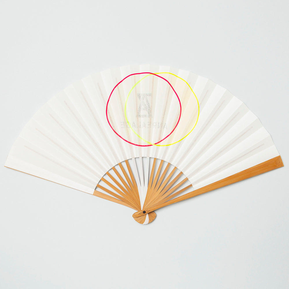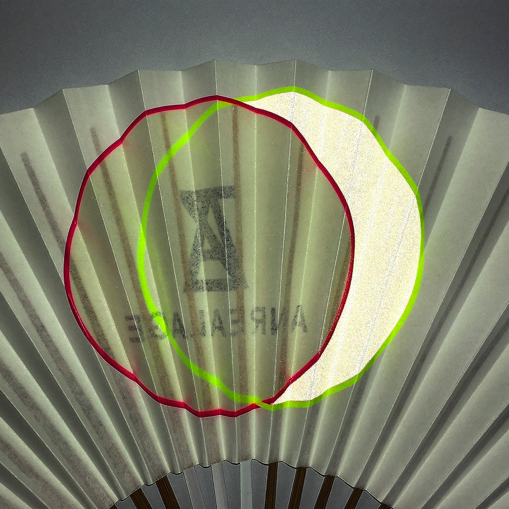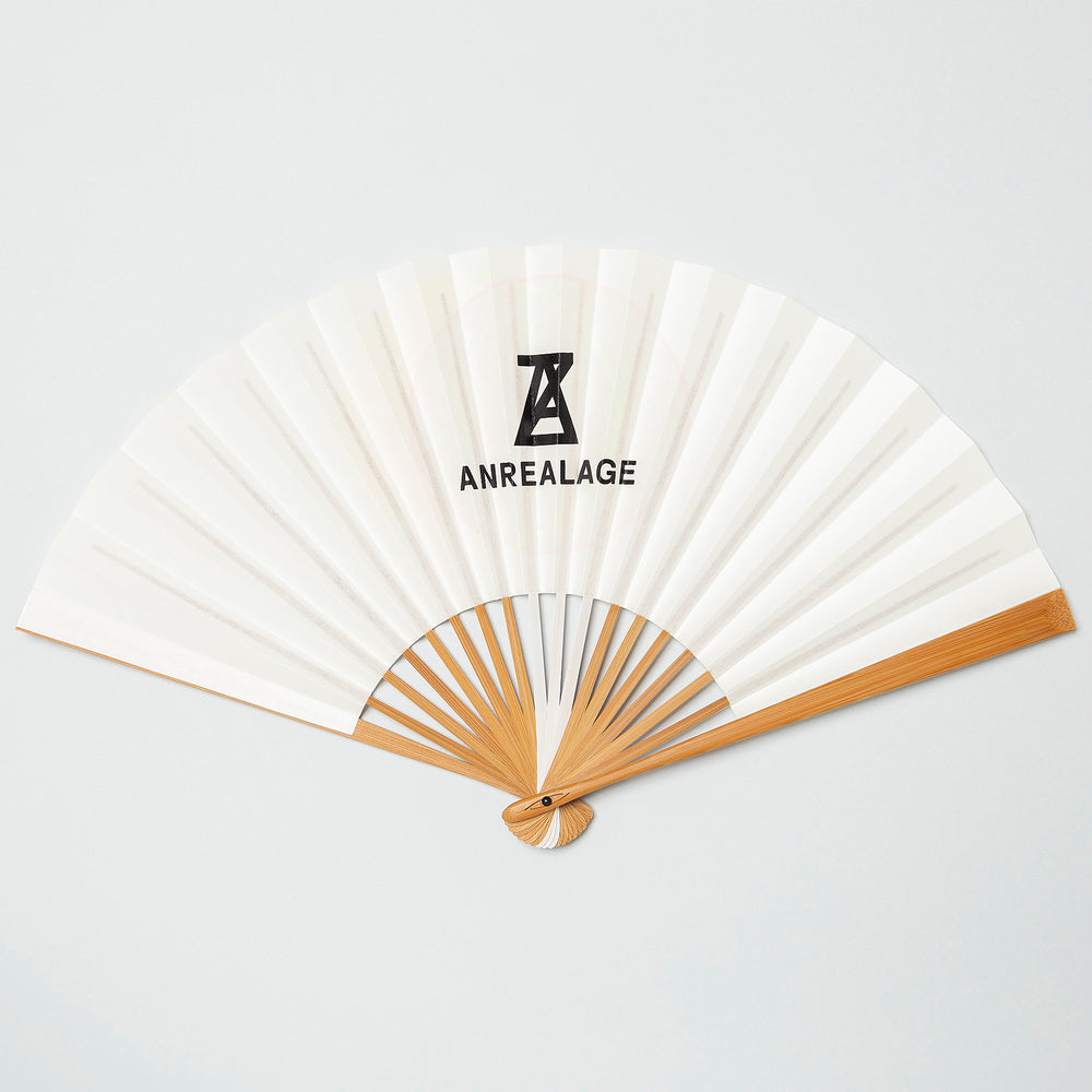 This item is a collaboration with ANREALAGE. The original title is "A LIGHT UN LIGHT". Designed with a motif of the sun and moon. The sun appears red in sunlight, and the moon glows yellow when illuminated in the dark, thanks to a special ink that is rarely used for ordinary fans. The ANREALAGE logo is printed on the reverse side.