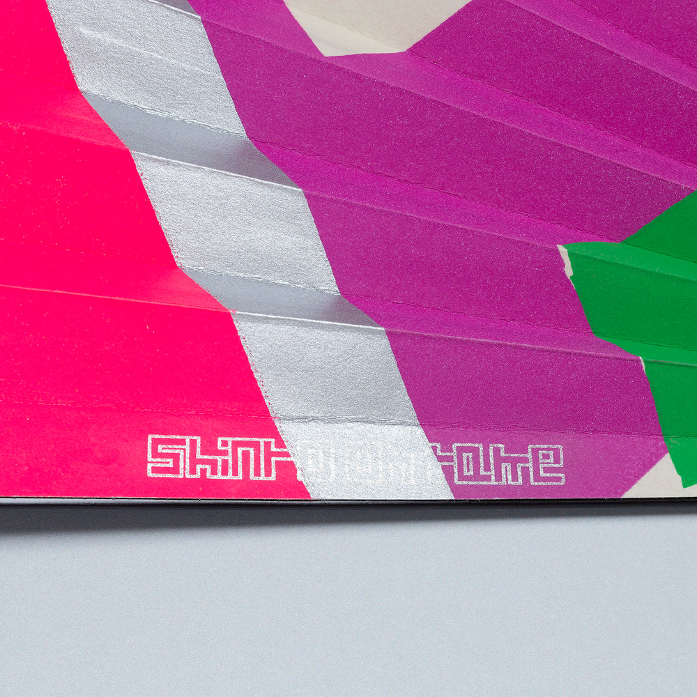 This item is a collaboration with Shinro Ohtake. The collage art created for "Banana To Yellow" is silkscreened one color at a time to create vivid colors and textures. The back side is stamped with gold and silver foil to create a luxurious atmosphere. The back side is stamped with gold and silver foil to create a luxurious atmosphere. The main frame is made of black genuine lacquer, and the motif of the eyes on the keystone is handwritten by craftsmen.