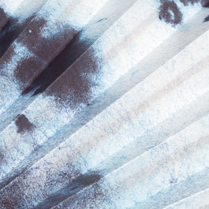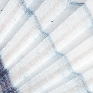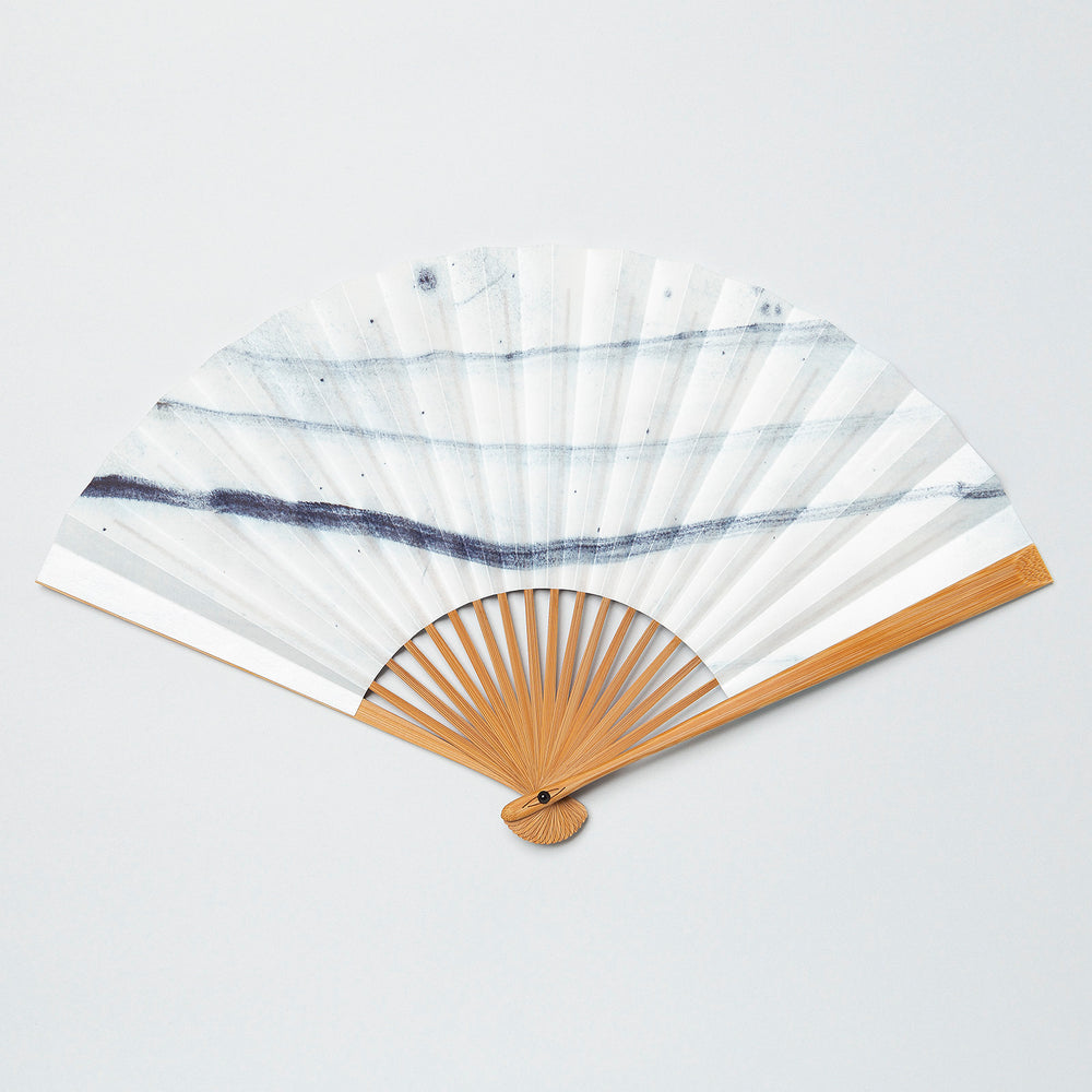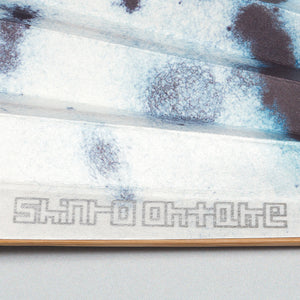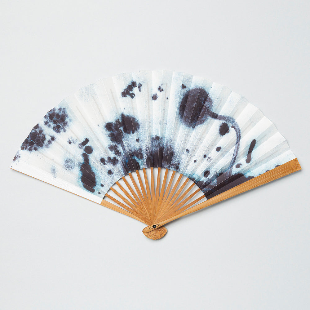 This item is a collaboration with Shinro Ohtake. This original design features art drawn in indigo ink that blurs and is trimmed to match the fan surface. The paper base is printed with pearl, giving it a simple yet elegant and luxurious look. You can also enjoy the different expressions on the front and back.