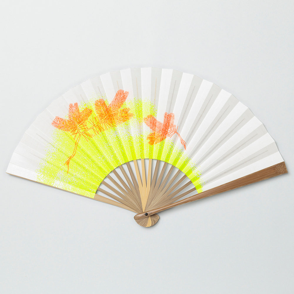 The "Nehiki Pine Tree", which is said to bring good luck, is printed in bright orange. Combined with the spray-on fluorescent yellow pattern, it exudes a street vibe despite the classic design.