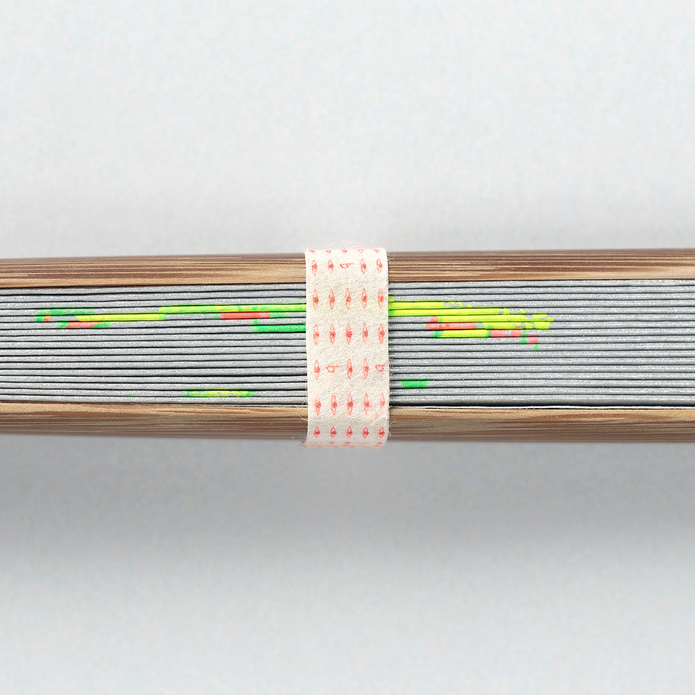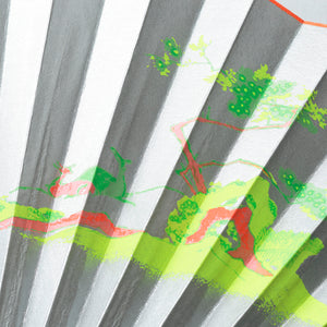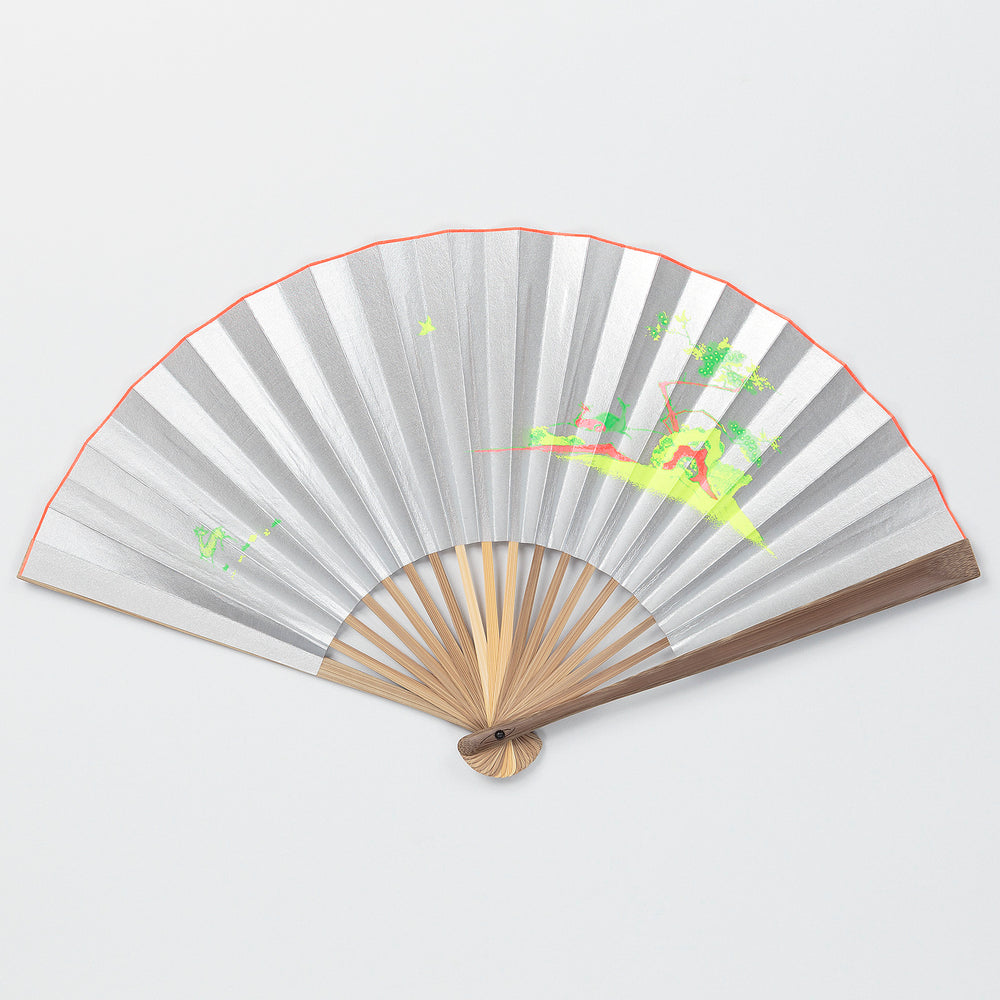 職人が刷毛で入れた上品なシルバーの背景に、鮮やかな蛍光色で絵柄をプリント。