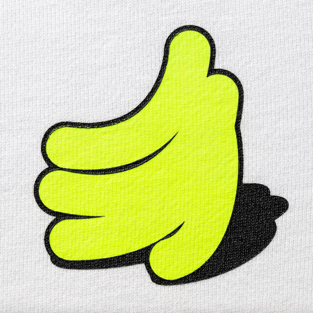 A sweatshirt with an iconic fluorescent yellow banana print on the left chest. A pocket on the left hip where you can put a folding fan.